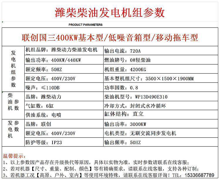 400千瓦潍柴发电机组作为宁波市鄞州联创机电有限公司的主打产品,整合了潍柴柴油发电机组的先进技术,具体优势体现在以下几个方面: