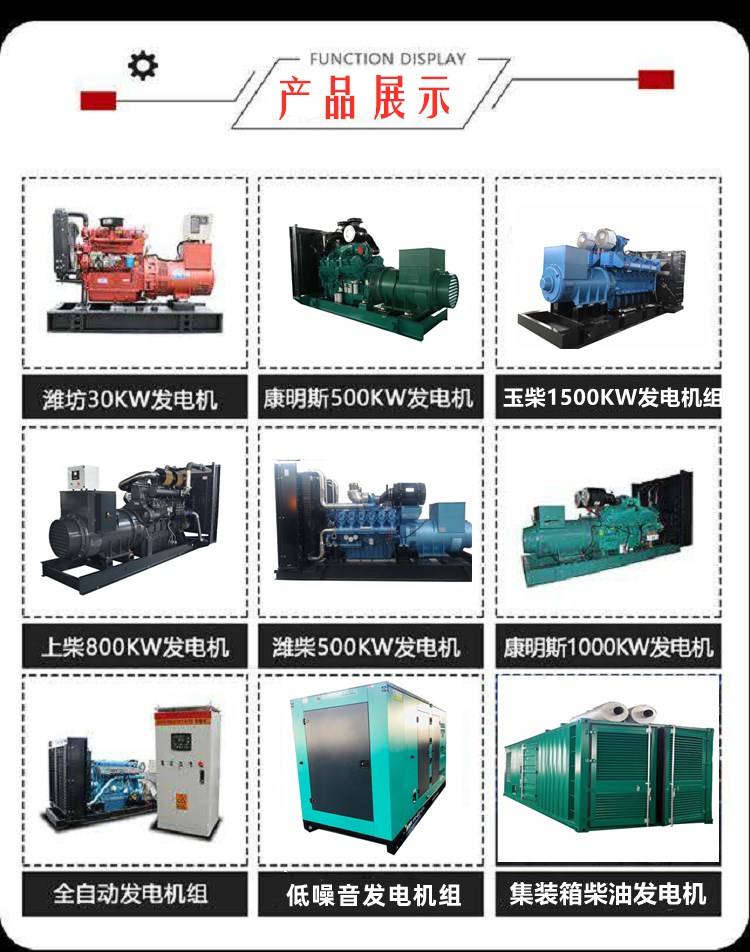 | 主营产品 | 柴油发电机组 , 汽油发电机 , 康明斯柴油发电机组 ,低噪音柴油发电机组,移动柴油发电机组,玉柴柴油发电机组,上柴柴油发电机组,潍柴柴油发电机组 | ||