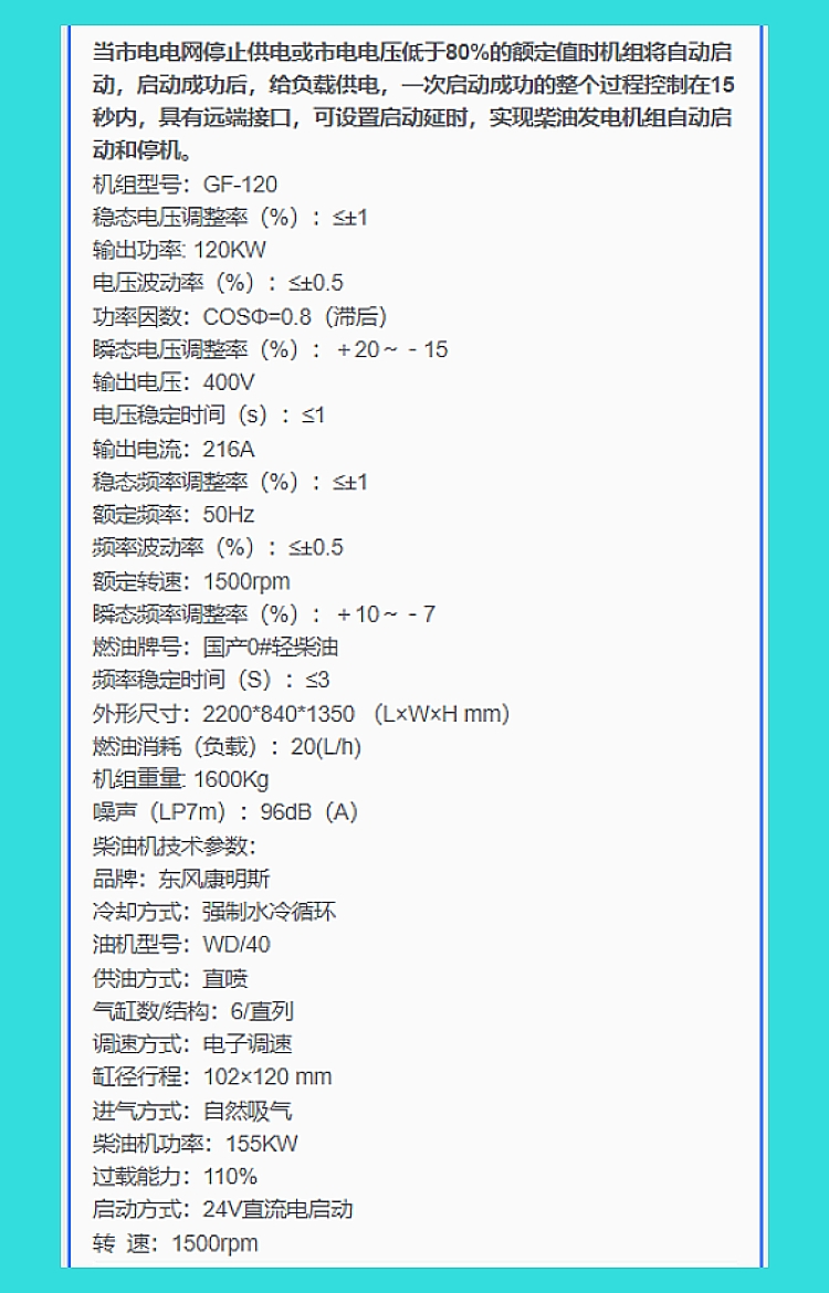 宁波市鄞州联创机电有限公司的120千瓦康明斯自动切换发电机组售价为72000.00元每台。考虑到设备的品牌、性能、自动化程度及服务保障,这一价格具有竞争力。购买此类全自动发电机组,可从以下角度看其投资回报: