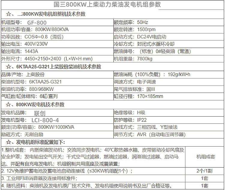 | 国三上柴动力1000KVA柴油发电机组 | 上柴动力发动机,国三排放,低油耗 | 330,000.00 |