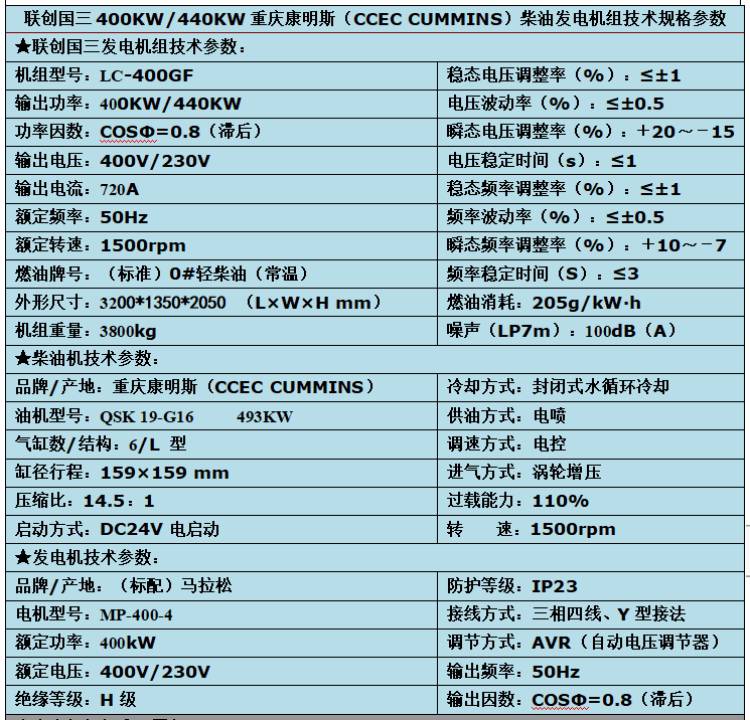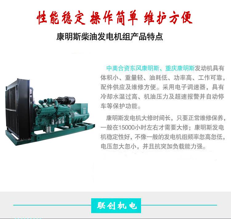 三相无刷 康明斯动力400千瓦发电机组 自启动国三 带载稳油耗低 联创