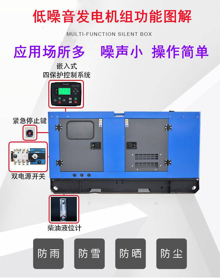 箱式设计意味着发电机、控制系统、消声装置等核心部位集成一体,整体模块化程度高。安装过程简化,适应各种场地空间,无需额外建设复杂机房。这对于体育馆在有限空间内部署备用电源极为便利。