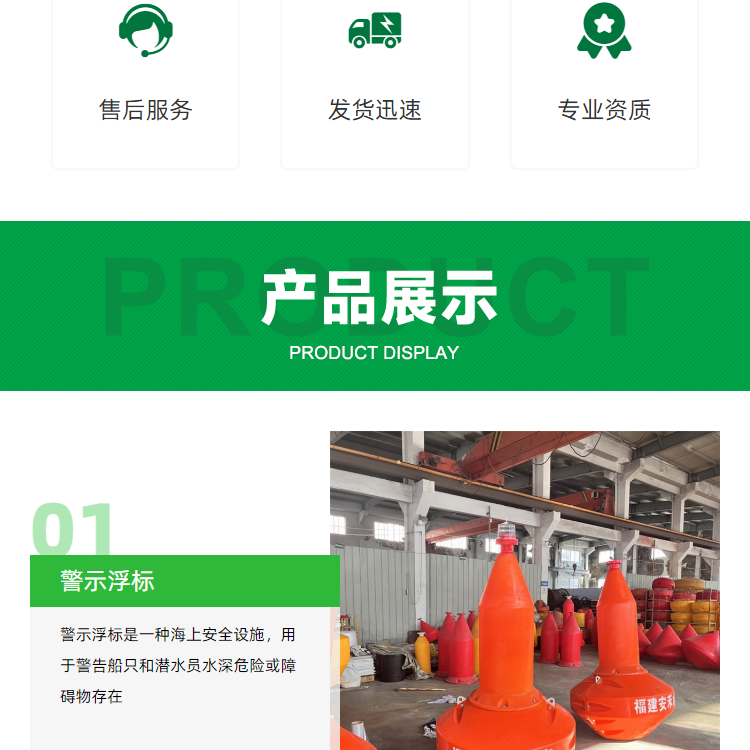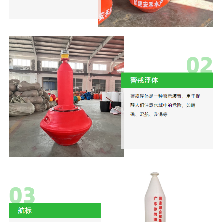 | 主营产品 | 警示浮标,管道浮筒,拦污浮筒,警示浮筒,水电站拦污排,水库河道拦污设备浮体,水上警戒线,塑料浮球,浮筒,浮标,浮漂,浮台等 | ||