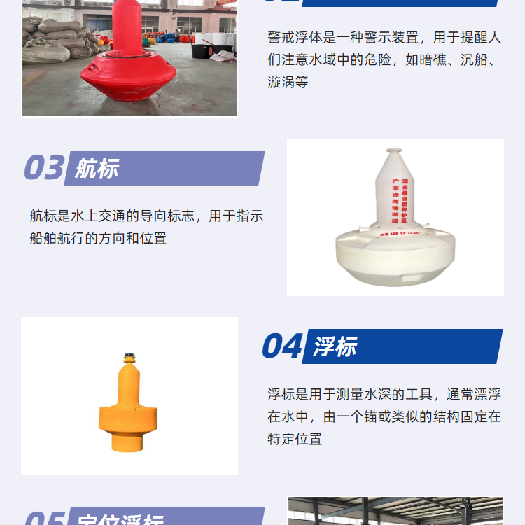 | 主营产品 | 警示浮标,管道浮筒,拦污浮筒,警示浮筒,水电站拦污排,水库河道拦污设备浮体,水上警戒线,塑料浮球,浮筒,浮标,浮漂,浮台等 | ||