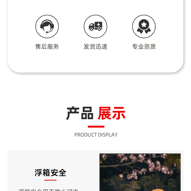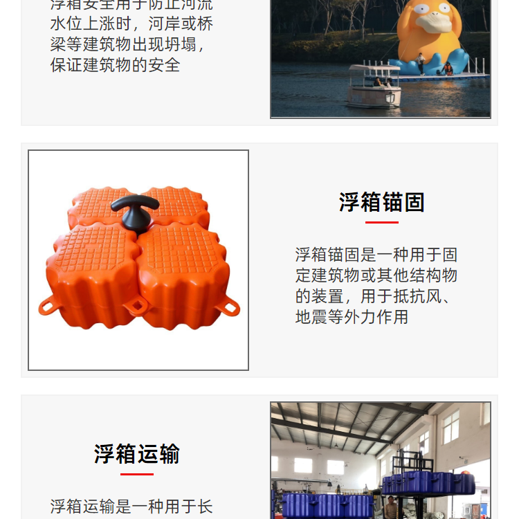 | 主营产品 | 警示浮标,管道浮筒,拦污浮筒,警示浮筒,水电站拦污排,水库河道拦污设备浮体,水上警戒线,塑料浮球,浮筒,浮标,浮漂,浮台等 | ||