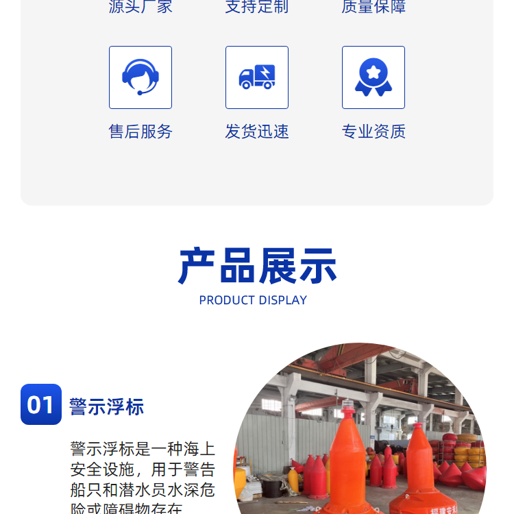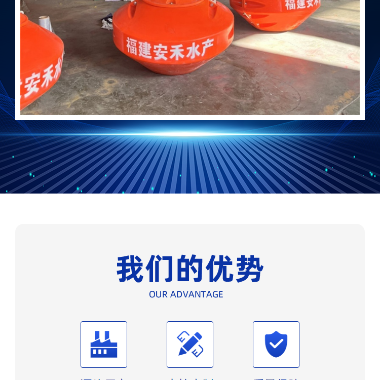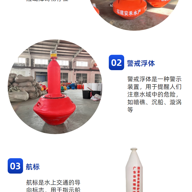 | 主营产品 | 警示浮标,管道浮筒,拦污浮筒,警示浮筒,水电站拦污排,水库河道拦污设备浮体,水上警戒线,塑料浮球,浮筒,浮标,浮漂,浮台等 | ||