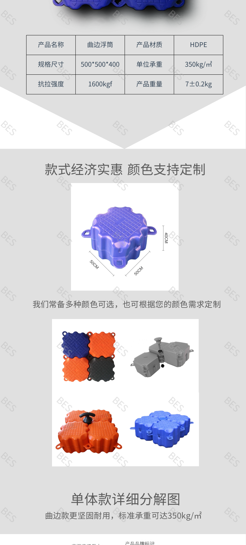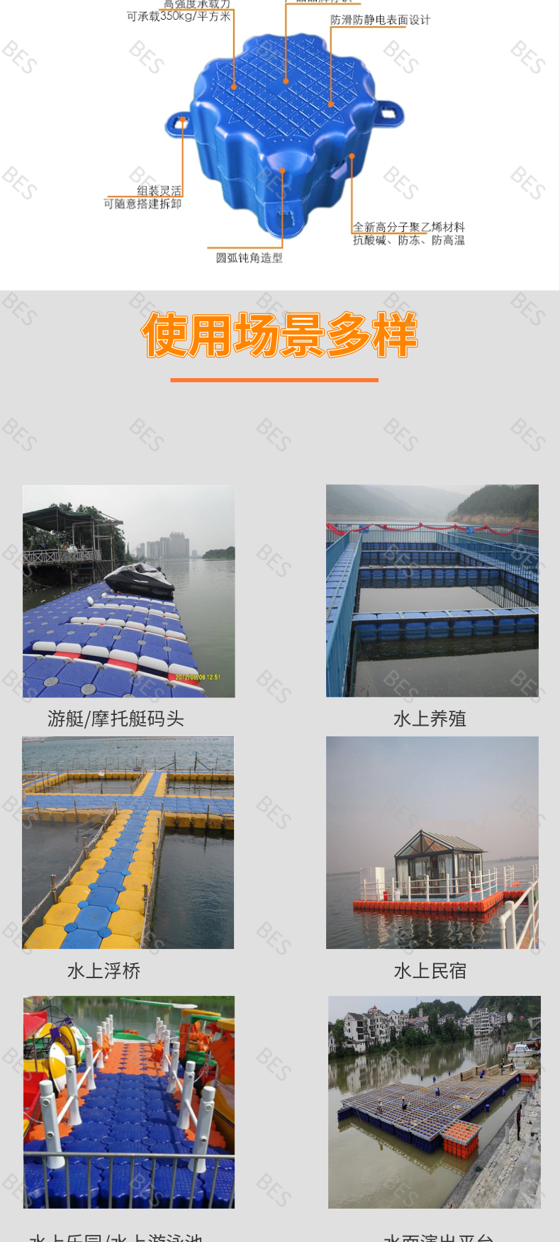 每平方米450.00元的价格,考虑到聚乙烯浮台的使用寿命、耐用性以及多场景适用性,宁波百世的产品具有极高性价比。相比传统水泥码头或者木质平台,聚乙烯浮台维护成本更低,安装灵活,且使用期长,综合成本优势明显。