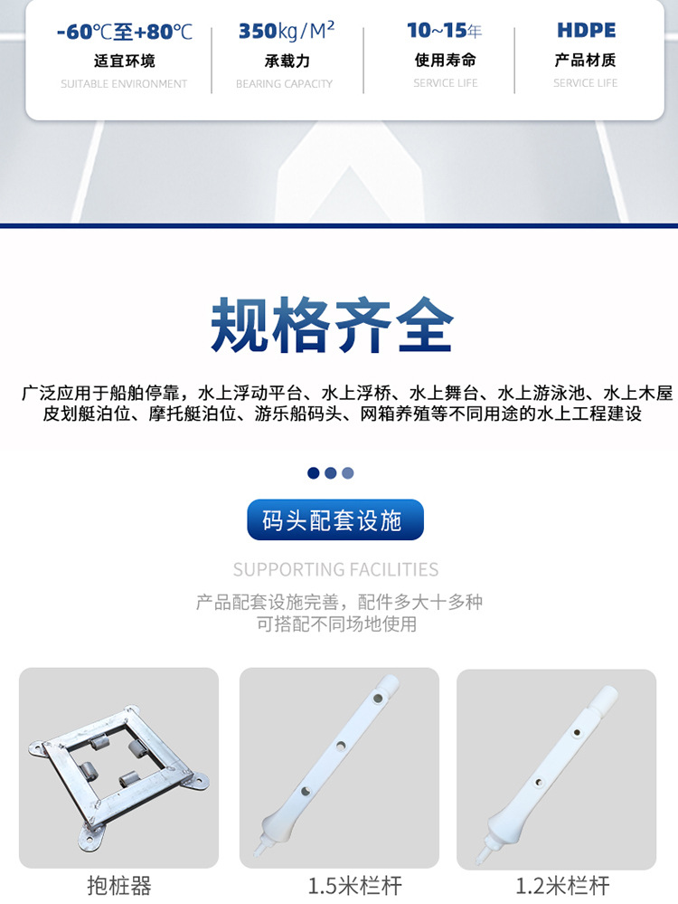 浮箱防腐技术是关键之一。百世的浮箱模块采用特制防腐涂层,抵御水体中各种腐蚀因子,延长使用寿命,减少维护成本。浮箱防水性能同样重要,防止漏水导致浮力衰减,保障整体结构安全。