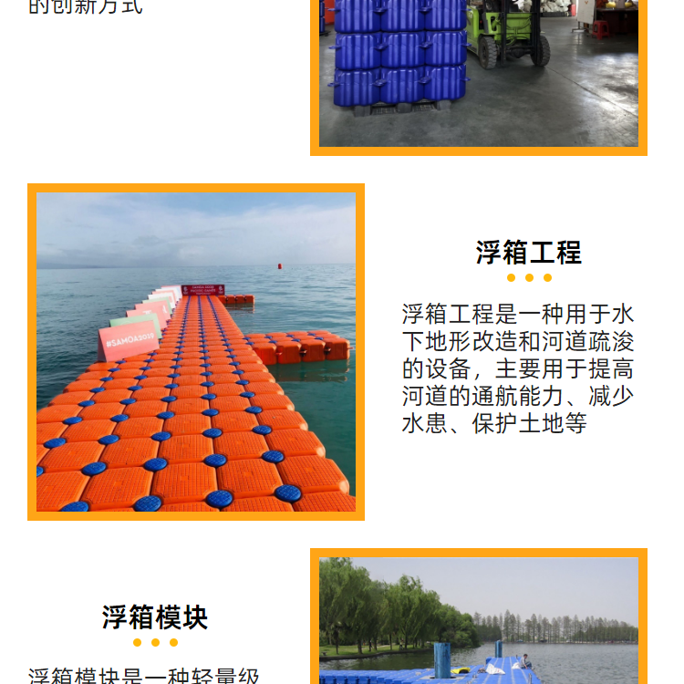海上弹性演出平台逐渐流行,成为消费新趋势。平台需要快速组装、稳固且能承受舞台设备重量。宁波百世自动化科技有限公司研发的浮箱结构具备模块化特点,可以灵活组合,兼顾浮箱承载力和演出平台的动态稳定性。塑木地板的铺设提升表面平整性和美观度,防滑性能减少安全隐患。