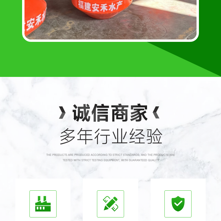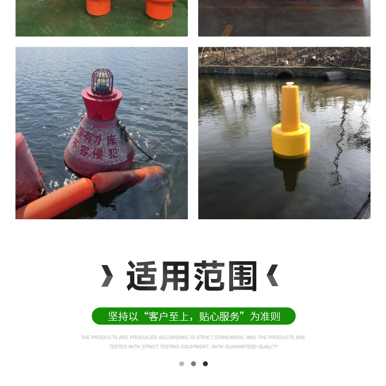 | 主营产品 | 警示浮标,管道浮筒,拦污浮筒,警示浮筒,水电站拦污排,水库河道拦污设备浮体,水上警戒线,塑料浮球,浮筒,浮标,浮漂,浮台等 | ||