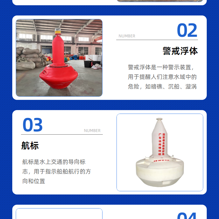 | 主营产品 | 警示浮标,管道浮筒,拦污浮筒,警示浮筒,水电站拦污排,水库河道拦污设备浮体,水上警戒线,塑料浮球,浮筒,浮标,浮漂,浮台等 | ||