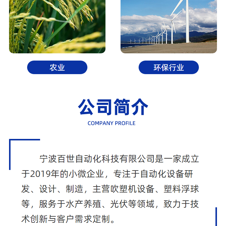 | 公司简介 | 宁波百世自动化科技有限公司以需求为导向,科技开发为动力,凭着优良的技术及诚信的理念,将科技成果不断转化为生产力,生产开发出实用新颖的各类产品。公司所涉及的行业包括水处理、医药食品、电子、化工、水产养殖、纺织印染、交通工具、交通安全设施、建筑业等等。我公司主要产品有:拦污浮筒,水电站拦污排,水库河道拦污设备浮体警示浮筒,塑料浮标,海上浮标,内河航标,滚塑浮球,海上浮球,大型浮体,异型浮体,浮,浮桶, ... | ||
